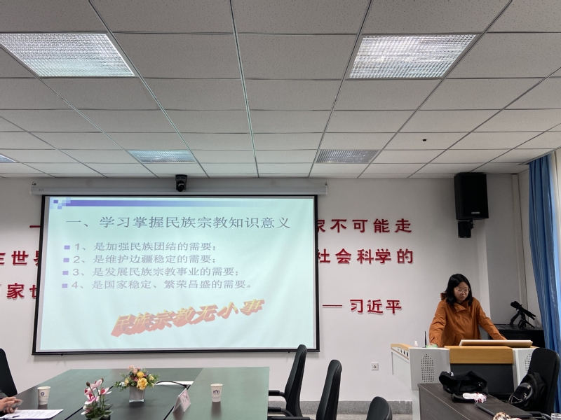 会议第二阶段,李光华书记组织师生参加孙玥博士关于党的民族宗教政策宣讲报告会。孙玥博士就学习民族宗教政策的重大意义、我国的民族政策和宗教政策进行了讲解和阐述。她说,民族宗教无小事,学习掌握民族宗教知识的重要意义在于其是加强民族团结、维护边疆稳定、发展民族宗教事业、国家稳定和繁荣昌盛的需要,“保护合法、制止非法、抵御渗透、打击犯罪”是依法管理宗教事务的要旨,我们必须全面正确地加以理解和贯彻执行。