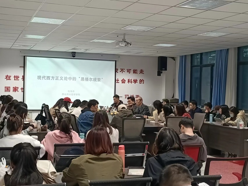 杜海涛博士的讲座主要是厘清现代政治哲学和现代正义论的理论渊源和发展脉络,以及其中发现的一条黑格尔线索,它包含于罗尔斯正义论以及后期罗尔斯正义论,社群主义正义思想和现代法兰克福学派的承认理论中。讲座首先介绍了政治哲学的两种进路和现代西方正义论的特点,并对康德与黑格尔这两位哲学家的伦理思想部分做了解释说明。杜海涛博士提出,在以康德主义为主线的现代正义论中,黑格尔的伦理思想有着补充、转折和建构的意义,他所强调的伦理实体中的各种既定规范,是对主流正义论的抽象性和形式性问题的重要诊断与纠正。