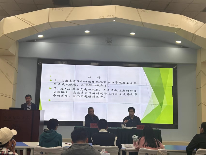 在问答环节,同学们踊跃提问。马俊峰教授分别就同学们提出的问题:马尔库塞对于辩证现象学的放弃、从《单向度的人》到“单向度的社会”、海德格尔的“操心”与马尔库塞具体哲学中的“现实的人”的联系;在被物化或者异化的发展中,人应该如何自处等,一一进行了解答。在愉快的讨论与思想的碰撞中,本期“中和论道”圆满落下帷幕。