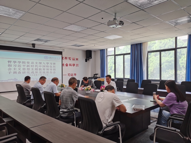 7月17日下午,哲学鲸鱼直播 党总支召开深入学习贯彻习近平新时代中国特色社会主义思想主题教育领导班子调研成果交流报告会,学校主题教育第一巡回组组长、学校党委统战部李景禄部长,第一巡回组牛小刚同志及哲学鲸鱼直播 主题教育理论学习读书班全体成员参加会议。李光华书记主持会议。