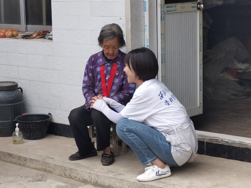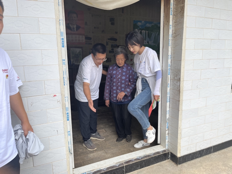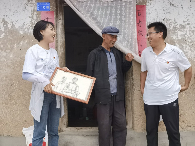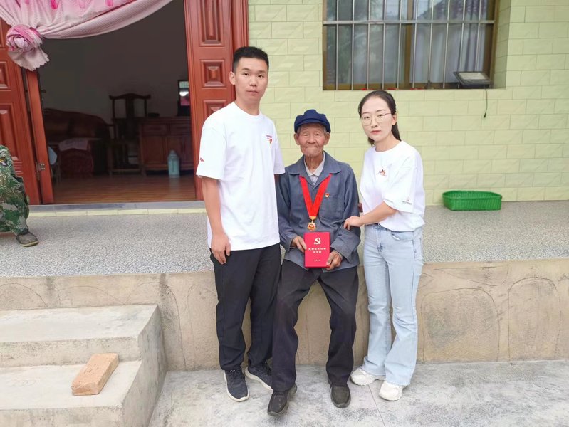鲸鱼直播 党总支副书记张建清和学校机关部门的郭小军、颉东凤三位老师在甘山村开展对口帮扶工作,对村里的情况非常了解。8月15日,在三位老师和村委会的带领下,实践队员们走进退伍军人、老党员和孤寡老人家中开展学习慰问工作,亲身感受他们的日常生活。