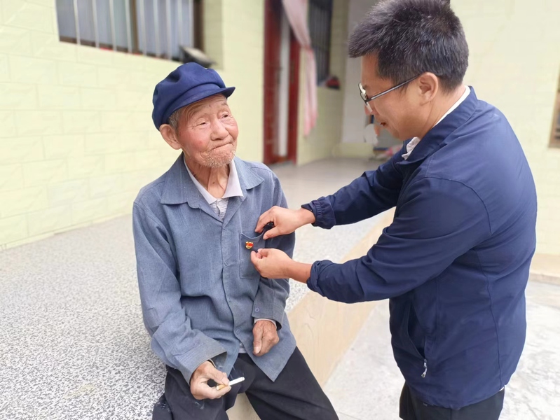 甘山村有两位老党员2021年收到了党中央颁发的“光荣在党50年纪念章”,在老党员家中,队员们为两位老人戴上党徽和纪念章,聆听老党员讲述新中国自建立以来到现在的巨大变化,在两位老人的亲身故事中感受老一辈人的爱党爱国之情。
