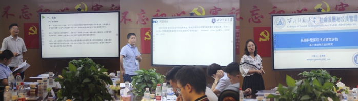 会议下半场,来自山东大学的张坤鑫博士、西北师范大学的蔡泽山博士以及王蓉娟分别以《中央生态环境保护督察的制度效应研究-来自地级市行政区的经验证据》《组织能力、组织氛围与地方政府预算绩效管理改革-来自西部省份的证据》《长期护理保险试点的政策评估—基于准实验的研究》为题进行了成果汇报,兰州大学张振华博士、兰州大学关斌博士、西北师范大学王琪瑛博士、兰州财经大学杜丽娜博士以及兰州大学张云晟博士分别就论文内容进行了与谈与点评。