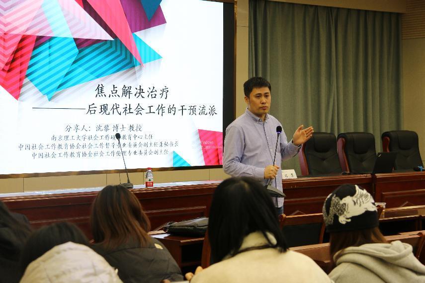 2023年12月4日,应鲸鱼体育直播 邀请,南京理工大学沈黎教授在西北师范大学10号教学楼D区四楼学术报告厅为我院师生带来了题为“焦点解决短期治疗——一项正向积极的社会工作流派”的学术讲座。本次讲座由鲸鱼体育直播 尹广文老师主持,鲸鱼直播 社会工作专业学生参加了此次讲座。
