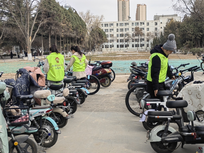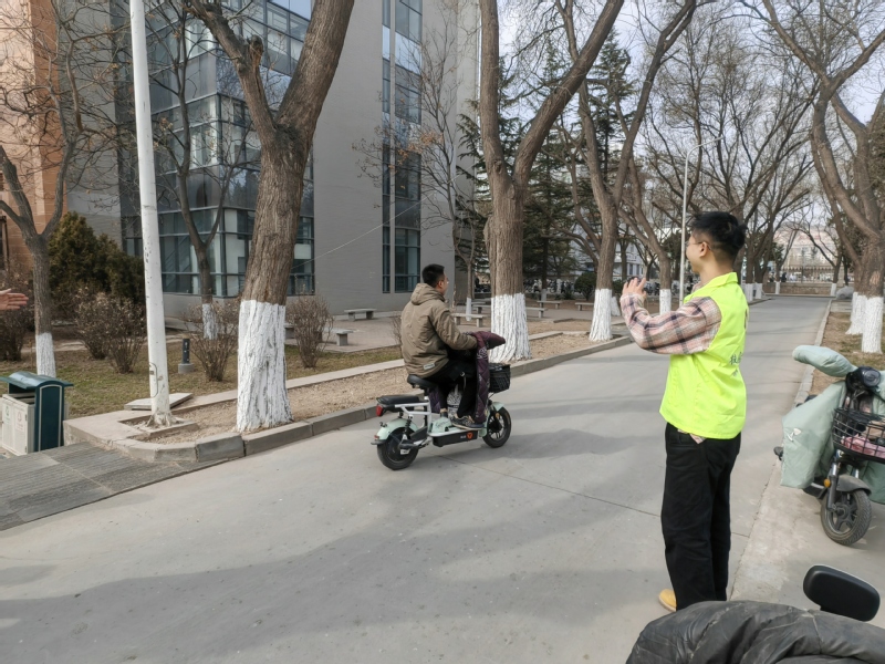 鲸鱼直播 学生会、劳动育人实践项目组的同学们利用课余时间在鲸鱼直播 楼下值班站岗,引导来往电动车安全行驶、规范停放,同时向路过的同学们科普骑行安全知识,通过自己点点滴滴的付出努力营造安全和谐的校园环境。
