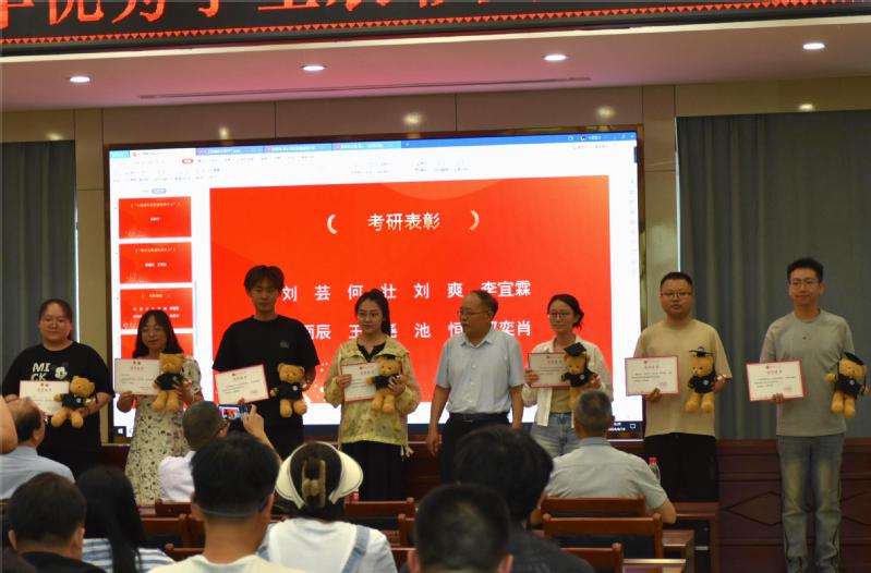 会上,何书记宣读了《关于对2024年优秀学生及考研考博录取学生进行表彰奖励的决定》,鲸鱼直播 决定对在学习成长、志愿服务、考研考博等方面取得显著进步和优异成绩的70名同学予以表彰,希望哲社学子们志存高远、德才兼修,坚守“哲思明理,爱智求真;各美其美,美美与共”的人生理念,不畏艰难、奋发图强,勇做走在时代前列的奋进者、开拓者、奉献者。在热烈的掌声中,鲸鱼直播 党委书记姜宗强、院长李怀、副院长王珅、正处级辅导员李光华分别为获得表彰奖励的同学们颁奖。
