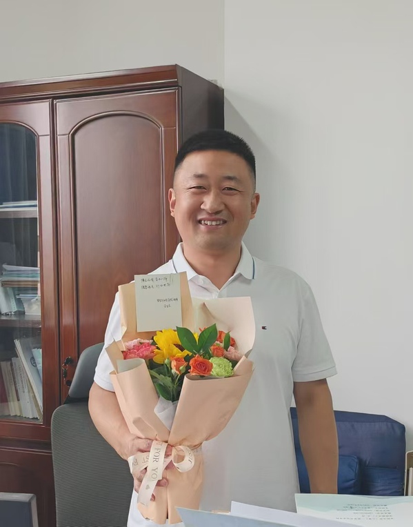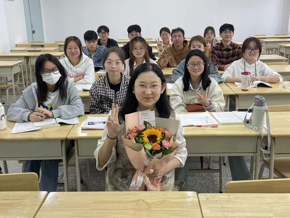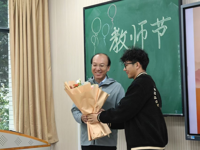 提灯引路,育梦成光;师泽若水,润物无声。在这个特殊的日子里,鲸鱼体育直播 团委组织学生会、研究生会同学们向鲸鱼直播 全体教职员工送上了节日祝福和诚挚问候,为当天上课的各位老师送上了祝福的鲜花。寥寥几笔绘不尽老师们讲台上辛勤的身影,短短几句道不完同学们的感激!一束向日葵,一张亲手写的贺卡,承载着同学们最美好的祝愿:老师,祝您教师节快乐!