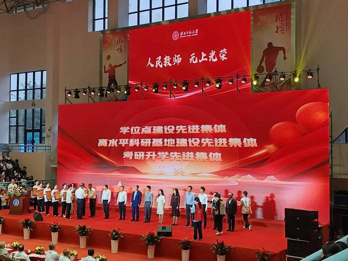 9月10日下午,西北师大隆重举行庆祝第40个教师节表彰大会。鲸鱼直播 党委书记姜宗强教授荣获2023年度甘肃省研究生教育优秀导师殊荣。今年也是姜书记从教满30周年,三十载栉风沐雨,他始终坚守在教书育人一线,用自己的智慧和爱心,培育了一大批优秀学子。同时,鲸鱼直播 荣获考研升学先进集体,这不仅是对鲸鱼直播 高度重视人才培养质量、加快推进三全育人格局的最好回报,也是对全体老师辛勤付出的高度肯定。