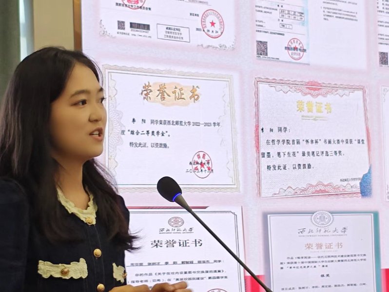 吕彬同学,心怀鸿鹄之志,在哲学的海洋中畅游,她以严谨的学术态度和深入的研究精神,在专业学习上取得了优异的成绩;李阳同学,热爱阅读,才思敏捷,她在课堂上积极发言,与老师和同学们积极开展学术交流;王慧燕同学,沉稳睿智,博学多才,她在学习中刻苦钻研,不断追求卓越,多次获得各类奖项;龙鑫同学,阳光开朗,充满活力,她以饱满的热情投入到学习和生活中,在专业学习上取得了突出的成绩。
