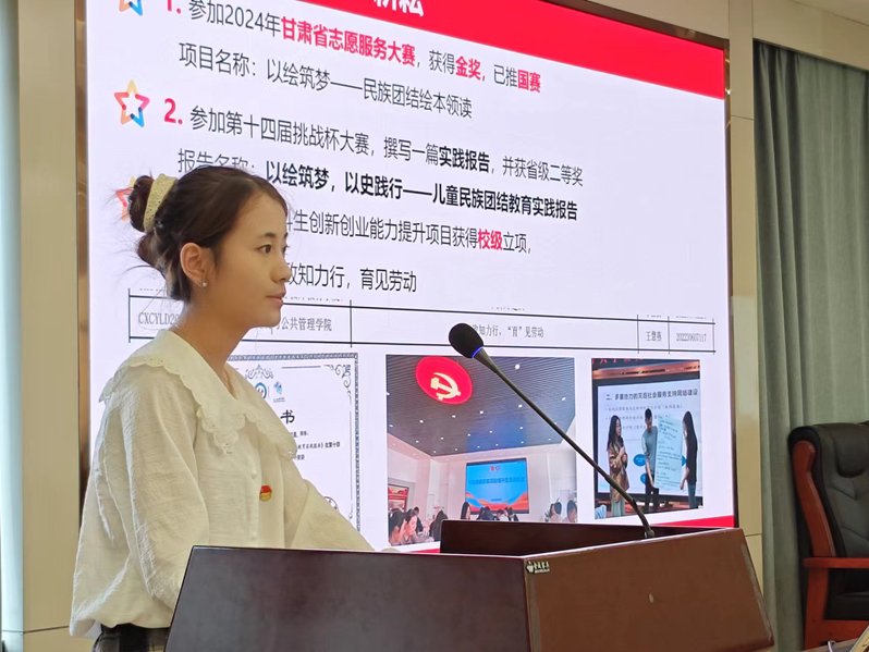 经过前期个人申报及鲸鱼直播 初审,4名候选人依次上台展示。答辩者从自我介绍,学业成绩,科技成果,志愿活动,成长感悟等方面,用精心准备的PPT,讲述着自己在学业上的拼搏与成就、在科研中的探索与创新、在社会实践中的奉献与担当。