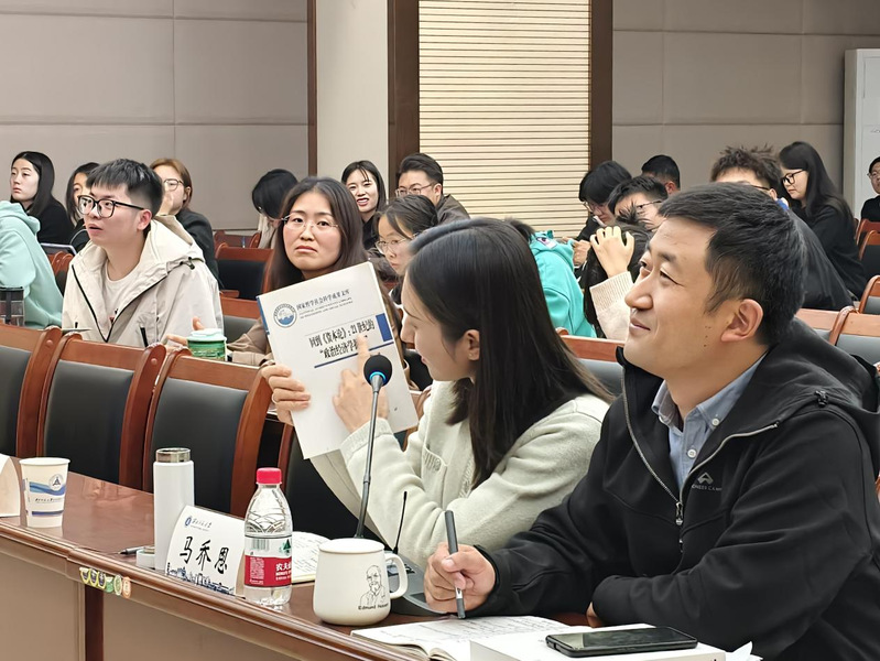 在提问环节,白刚老师与在场的同学就讲座中的相关问题进行了讨论与解答。