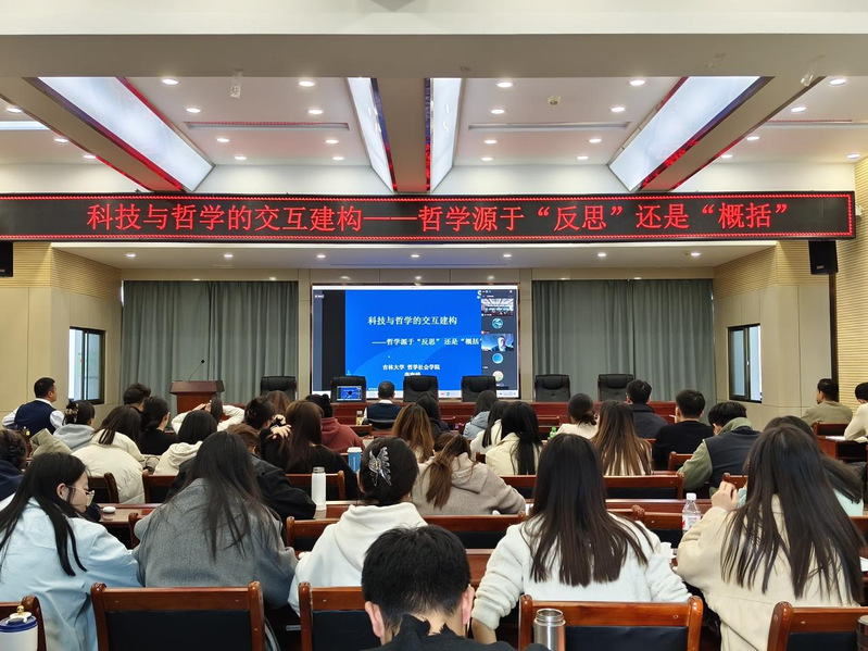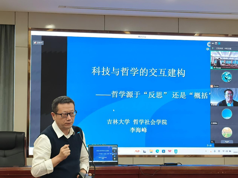 11月18日,“中和论道”第115期在鲸鱼直播 4楼报告厅举行,本期讲座主题为“科技与哲学的交互建构 哲学源于‘反思’还是‘概括’”,由吉林大学哲学社会鲸鱼直播 李海峰教授主讲,姜宗强教授担任与谈人,王珅副教授主持。讲座吸引了校内外诸多师生线上、线下热情参与。