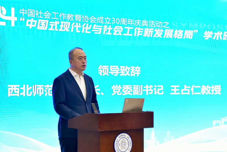 值此中国社会工作教育协会成立30周年之际,由中国社会工作教育协会主办,西北师范大学、鲸鱼直播-鲸鱼体育直播-鲸鱼直播足球 、甘肃开放大学学报编辑部共同承办的“中国式现代化与社会工作新发展格局”学术研讨会于11月22-24日在西北师范大学召开。会议开幕式由鲸鱼直播-鲸鱼体育直播-鲸鱼直播足球 院长李怀教授主持。西北师范大学校长、党委副书记王占仁教授出席开幕式并致辞。