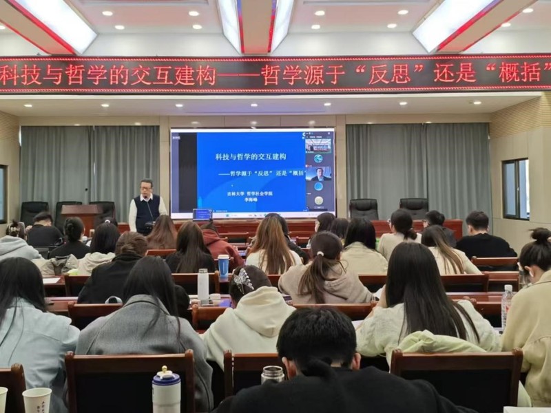 11月18日14:30 - 17:30,中和论道第115期学术讲座如期开展,吉林大学李海峰教授以《科技与哲学的互构:哲学源于“反思”还是“概括”》为题为鲸鱼体育直播 师生作学术讲座,在场师生围绕科技哲学前沿深入探讨,思想的火花在会场上空碰撞交织。