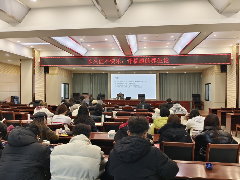 2024年11月25日,华东师范大学哲学系方旭东教授应邀为鲸鱼体育直播 师生作报告,题目为“长久但不快乐的人生:评嵇康的养生论”,讲座由鲸鱼直播 张立恩教授主持,贺更粹教授担任与谈人,高菱老师及哲学系学生参加讲座。