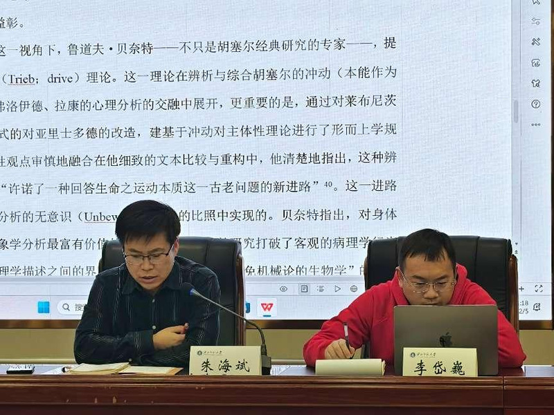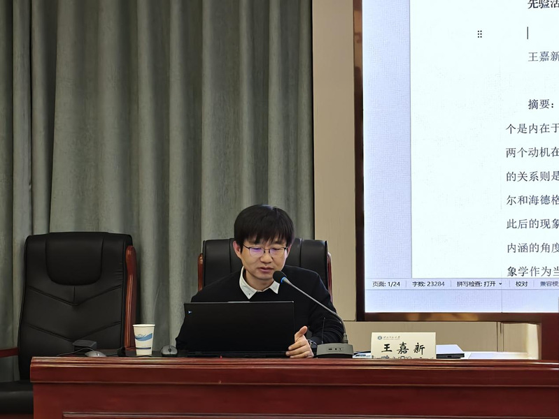 最后,王珅副教授对讲座进行总结,王教授将讲座内容置于认识论视野下进行理解,认为生命与意义的平衡在个体层面体现为从活的个体原初意识体验出发,去建构一个与事物本质相一致的意义世界。例如,胡塞尔在《逻辑研究》“第一研究”中所讲述的“表达与含义”,作为活的人,我对对象世界的认识,就是要建构一个意义世界,最后这个意义世界是普遍有效的。这一过程需要从活的生命开始,并且要将经验还原为纯粹的意识任务。同时,主持人还提到亨利、舍勒等哲学家的观点,他们强调回到个体肉身的活动体验,这也反映了生命活力与世界本质之间的平衡关系。王珅老师最后总结认为此次讲座对现象学研究富有重要意义,为师生们带来了新的思考方向,同时也对王嘉新老师的精彩分享表示感谢。至此,本次讲座在热烈的掌声中圆满结束。