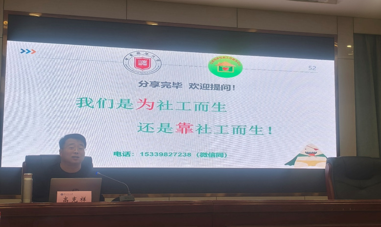 谢丽丽老师首先简要介绍了高克祥老师在社会工作相关领域的重要贡献以及研究成果,并对高老师的莅临表示热烈的欢迎。谢老师提到,社会工作专业的一门课程是《社会服务项目策划与评估》,高老师在项目方面有着丰富的社会服务项目申报经验,希望在项目策划、撰写和评估方面带给学生一些经验和方法。
