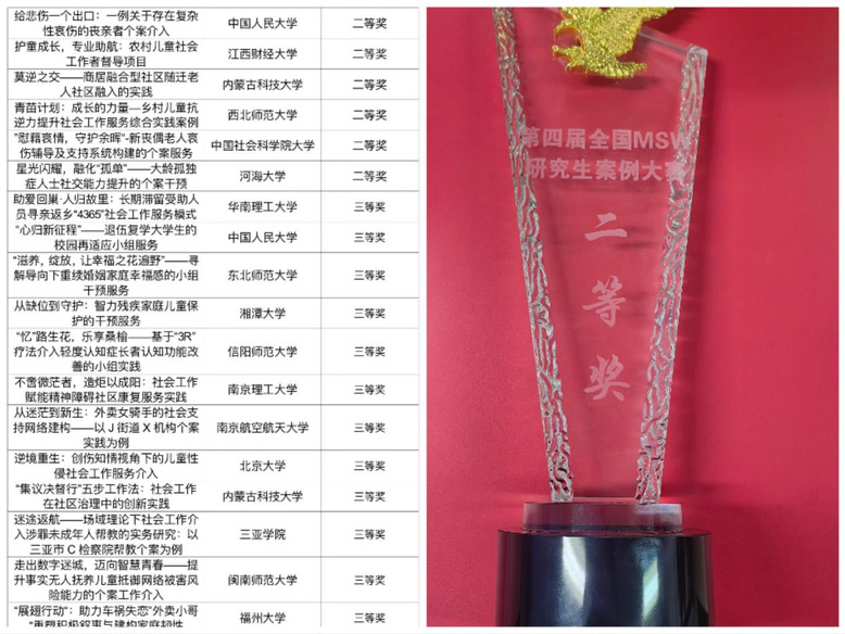 第四届“全国MSW研究生案例大赛”由全国社会工作专业学位研究生教育指导委员会指导,社会工作专业学位研究生教育院校联席会议主办,南昌大学公共政策与管理鲸鱼直播 、社会工作(MSW)教育中心承办,是国内社会工作教育界高水平的学生实践交流平台,对于培养社会工作学生的学术素养、实务能力、专业思维具有重要作用。此次参赛,为鲸鱼体育直播 师生提供了一个宝贵的与其他MSW培养单位深度交流学习的机会。