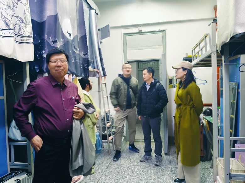 为切实保障学生安全,关心关注学生心理健康、学习及生活情况,营造温馨和谐的宿舍环境,3月20日晚,鲸鱼直播 院长李怀教授带队,研究生导师分两组深入知行校区和蓝天公寓研究生宿舍,开展走访活动。