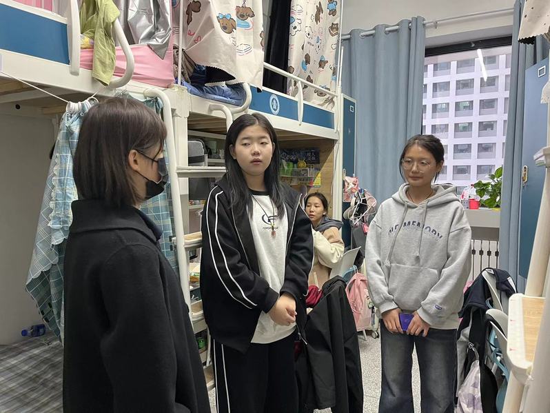 在走访宿舍的过程中,班主任老师们关心慰问了同学们的学习生活、宿舍卫生、身心健康等情况,耐心叮嘱同学们要养成良好的生活习惯,优化宿舍生活与学习环境,严格遵守学校用电安全、宿舍门禁等规章制度,把宿舍安全牢牢摆在第一位,与舍友们和谐相处,相互促进,共同成长。