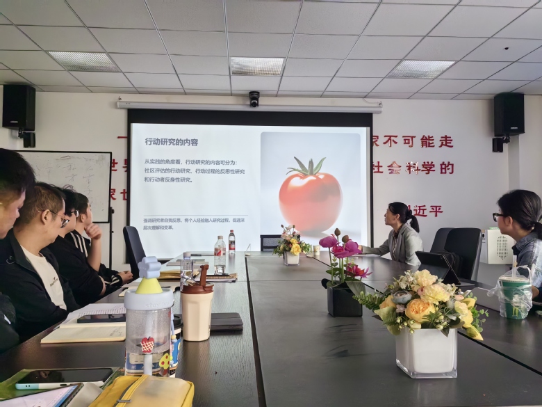 讲座中,马老师围绕行动研究展开了深入讲解。她从行动研究概述出发,向同学们介绍了行动研究在社会工作中的重要地位。在行动研究的内容上,她详细阐述了三个方面:社区评估的行动研究需以建立信任为基础,通过梳理社区问题与优势资产,与居民共同制定分层行动方案;行动过程的反思性研究强调全流程动态检视,通过持续评估优化服务策略;行动者反身性研究则聚焦职业经历回溯,助力社工实现自我认同与专业定位。