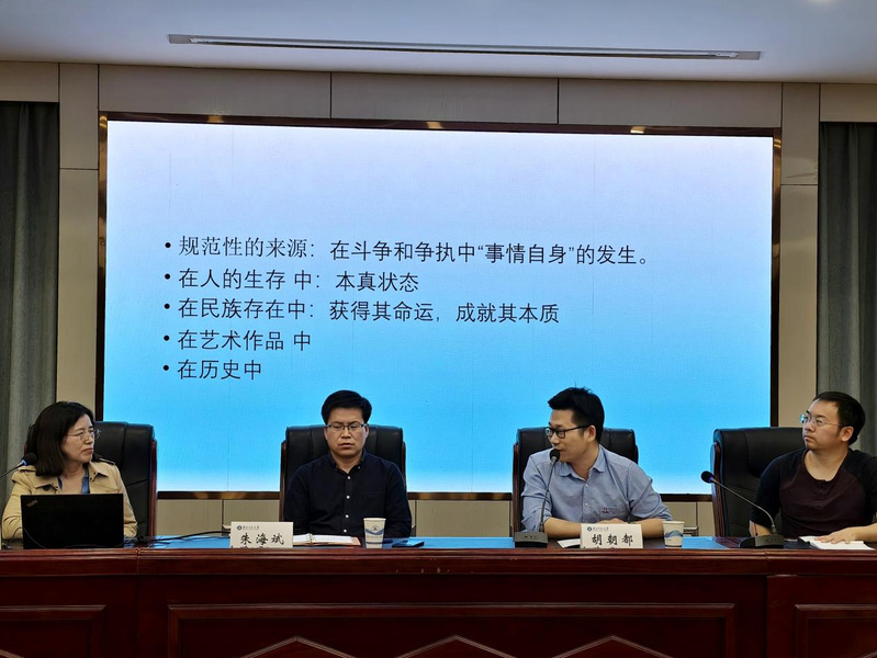 王珅老师提出,海德格尔哲学中的“澄明”“遮蔽”能否理解为胡塞尔哲学的“在场”和“缺席”?在海德格尔哲学中,这种原始的真理是如何获得无蔽的状态的?朱海斌老师则是站在善意原则上对海德格尔进行了辩护,针对图根德哈特对海德格尔的批评进行了回应。胡朝都老师指出,在谈到真理的时候,一旦找到原初的东西,是不是都不足以成为论断一个判断是否真假的一个标准?李岱巍博士提出,海德格尔的“真”是一种揭示状态,那么谁是主体、施行者呢?朱老师对此进行了一一的回应。