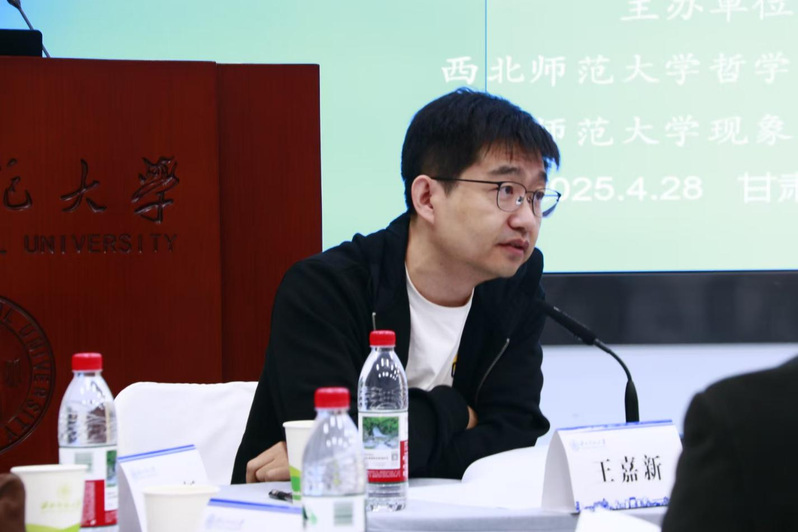 西北师范大学现象学研究中心主任朱海斌副教授在会议末尾进行了简要总结发言。他代表西北师大现象学研究中心,向莅临现场的各位专家学者表达了诚挚的感谢。朱老师指出,本次会议正是缘于李老师新著的出版而召开。李朝东老师作为西北师大现象学研究的奠基人,其学术生涯如同大多数现象学研究者一样,始于海德格尔研究,但其后转向并深耕胡塞尔现象学领域。如今推出新著,距其投身现象学研究已逾四十载,其中的艰辛与成就,唯有亲历者方能体会。朱海斌老师高度评价李老师:虽年事渐长,学术热忱却有增无减。多年来,李朝东老师始终坚守在学术研究与教学一线,为西北师大现象学研究持续注入了蓬勃的生命力。