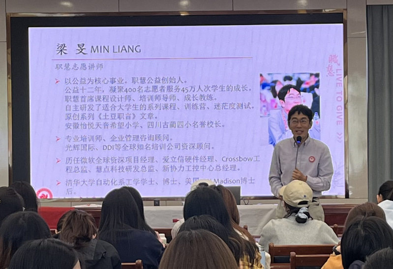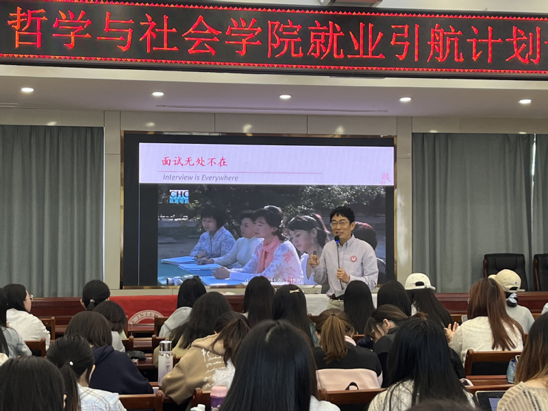 为引导学生增长知识才干、提高综合素质、树立正确的成才观、就业观、择业观,助力学生提早做好就业规划,5月9日下午,鲸鱼体育直播 举办就业引航计划专题讲座。本次讲座由鲸鱼直播 党委副书记何冰清主持,北京职慧公益创业发展中心梁旻老师主讲,2022级全体本科生参加并听取了此次讲座。