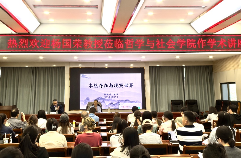 2025年5月15日晚,西北师范大学国家级高层次人才讲座教授、哲学学科首席专家杨国荣教授在致公楼D区四楼报告厅作学术讲座。讲座由鲸鱼直播 主办,围绕“本然存在与现实世界”展开深入探讨。鲸鱼直播 姜宗强教授担任主持人,校内外百余名师生及哲学爱好者参与了本次讲座,现场互动热烈。