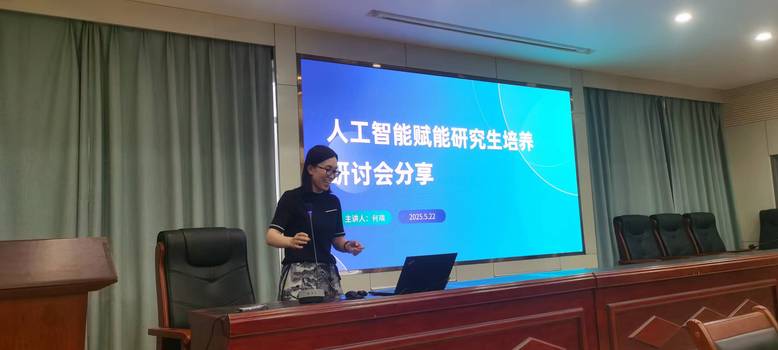 在科技浪潮汹涌澎湃的当下,人工智能正以前所未有的速度重塑教育与科研格局。近期,鲸鱼直播 教师白宗军、何瑞参加了由中国学位与研究生教育学会在国防科技大学举办的人工智能赋能研究生培养研讨会,并于5月22日在鲸鱼直播 教职工大会上,就培训情况作了分享。