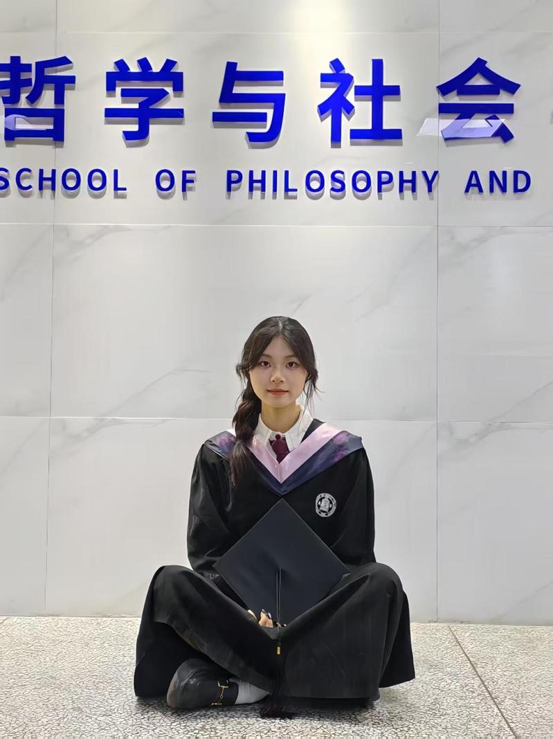 她的毕业寄语是:“我们的哲学旅途在古希腊先贤‘认识你自己’的箴言下启程,在思辨中跋涉,远没有终点。在未来的激流中,愿我们守护好这份心灵的‘阿基米德点’,不为喧嚣所淹没,在行动中不失反思,在投入中保持一份哲人的清明与从容。也愿我们永葆对世界本质的好奇,拥抱“无知”,持续追问,在永恒的哲学叩问中寻找属于自己的道路。”