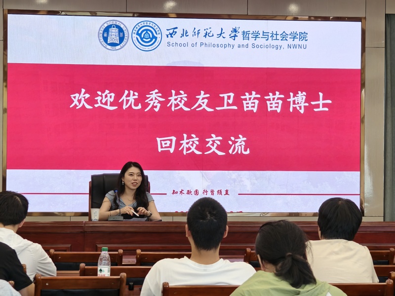 在哲学专业就业和发展方面,卫苗苗博士结合自身经历和行业现状,为同学们进行了详细的分析和指导。她指出,哲学专业培养的批判性思维、逻辑分析能力和人文素养,在当今社会具有独特的价值和广泛的适用性。无论是继续深造从事学术研究,还是进入企业、政府部门工作,哲学专业的学生都能凭借自身的优势,在不同领域发光发热。她还分享了自己在攻读博士学位和职业发展过程中的经验和感悟,鼓励同学们明确目标,坚持不懈,勇于探索适合自己的发展道路。