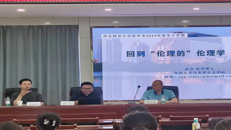2025年7月15日,由鲸鱼直播-鲸鱼体育直播-鲸鱼直播足球 承办的哲学系暑期小学期讲座成功举行。海南大学马克思主义鲸鱼直播 副教授、博士生导师赵浩担任主讲人,作了题为《回到“伦理的”伦理学》的学术报告。讲座由哲学系杜海涛副教授主持,2023级西北师范大学新文科基地班同学现场交流学习。