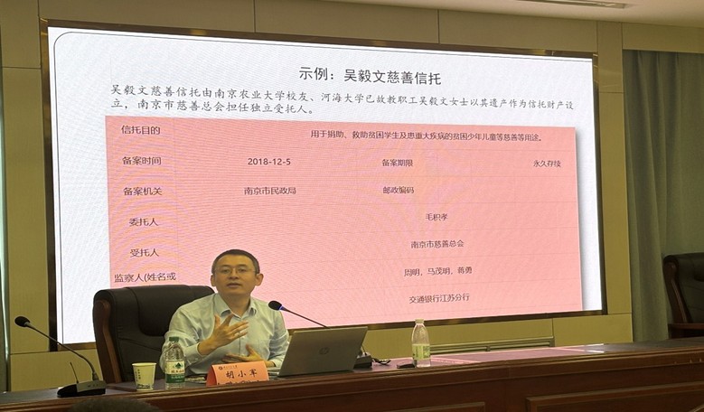 随后,胡小军老师聚焦《中华人民共和国慈善法》,详解其核心制度创新,他详细介绍了五大关键制度:慈善组织登记认定制、公开募捐及网络募捐制度、慈善信托制度、慈善捐赠和财产管理制度以及信息公开与监管制度。并以河海大学吴毅文老师设立永久慈善信托为例,说明慈善信托在作用及其未来趋势。胡小军老师剖析了公益慈善发展趋势,即“社会化、组织化、专业化、多元化、本地化”将是社会组织未来发展的主要方向。以社区慈善为例,强调社区是社会工作与公益服务的重要场域,凸显公益慈善事业的本地化特征。