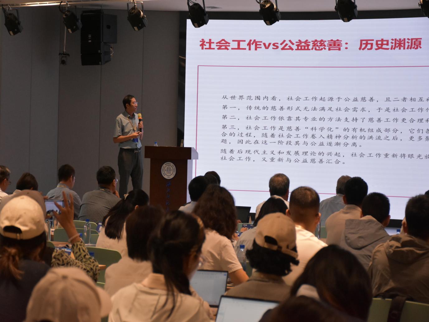 2025年9月12—14日,由中国社会学公益慈善研究专业委员会、西北师范大学主办,鲸鱼直播-鲸鱼体育直播-鲸鱼直播足球 、甘肃省社会工作联合会、西北师范大学慈善研究院承办,《河北学刊》《探索与争鸣》《西北师大学报(社会科学版)》《贵州大学学报(社会学版)》《公益》协办的2025年“融合创新,赋能未来:社会工作与公益慈善高质量发展研讨会”在西北师范大学召开。本次会议论坛的主题为“融合创新,赋能未来:社会工作与公益慈善高质量发展”,有来自北京大学、南京大学、中国青年政治鲸鱼直播 、南开大学、云南大学、华东理工大学、厦门大学、深圳大学、兰州大学、吉林大学、浙江大学、北京师范大学等27所知名高校,甘肃省社科院、广州社会组织研究院、广州市君则智库研究院等3家科研院所,《河北学刊》《探索与争鸣》《中国社会科学报》《贵州大学学报》等4家核心期刊编辑,甘肃兴邦社会工作服务心、宁夏红十字基金会、宁夏吴善社会工作发展服务中心、兰州德爱心智障碍者社会服务中心、北京市晓更助残基金会、甘肃一山一水环境与社会发展中心、宝鸡市星之家助残服务中心、康乐县崇善社会工作服务中心、甘肃同心社会工作服务中心等22家专业社服务机构的百余位学者参加研讨会。