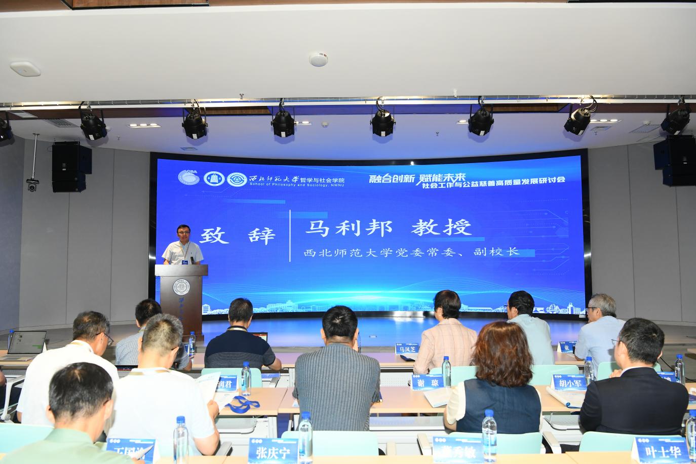 西北师范大学常委党委、副校长马利邦教授在致辞中指出,社会工作是守护民生的专业力量,公益慈善是传递温暖的阳光事业,如何推动二者的有效融合创新社会治理体系,提升社会治理效能,值得大家深入研讨。本次研讨会正在搭建三座桥梁:一是理论实践之桥,让学术界前沿对接业界需求,让以现经经验培养理论创新;二是东部与西部之桥依托中路,四川等地区,推动东西部在服务乡村公益领域的经验互鉴,资源协同;三是高效的社会之桥,吸引社会力量参与和推动高效人才培养致富,研究服务公益事业,构建校舍协同,共生共赢的良好生态。马利邦教授表示,各位专家的研究成果和真知灼见,定会让我们开阔视野,启迪思维,推动工作。诚邀各位专家经常来西北师范大学给我们出谋划策,最后预祝本次研讨会圆满成功!