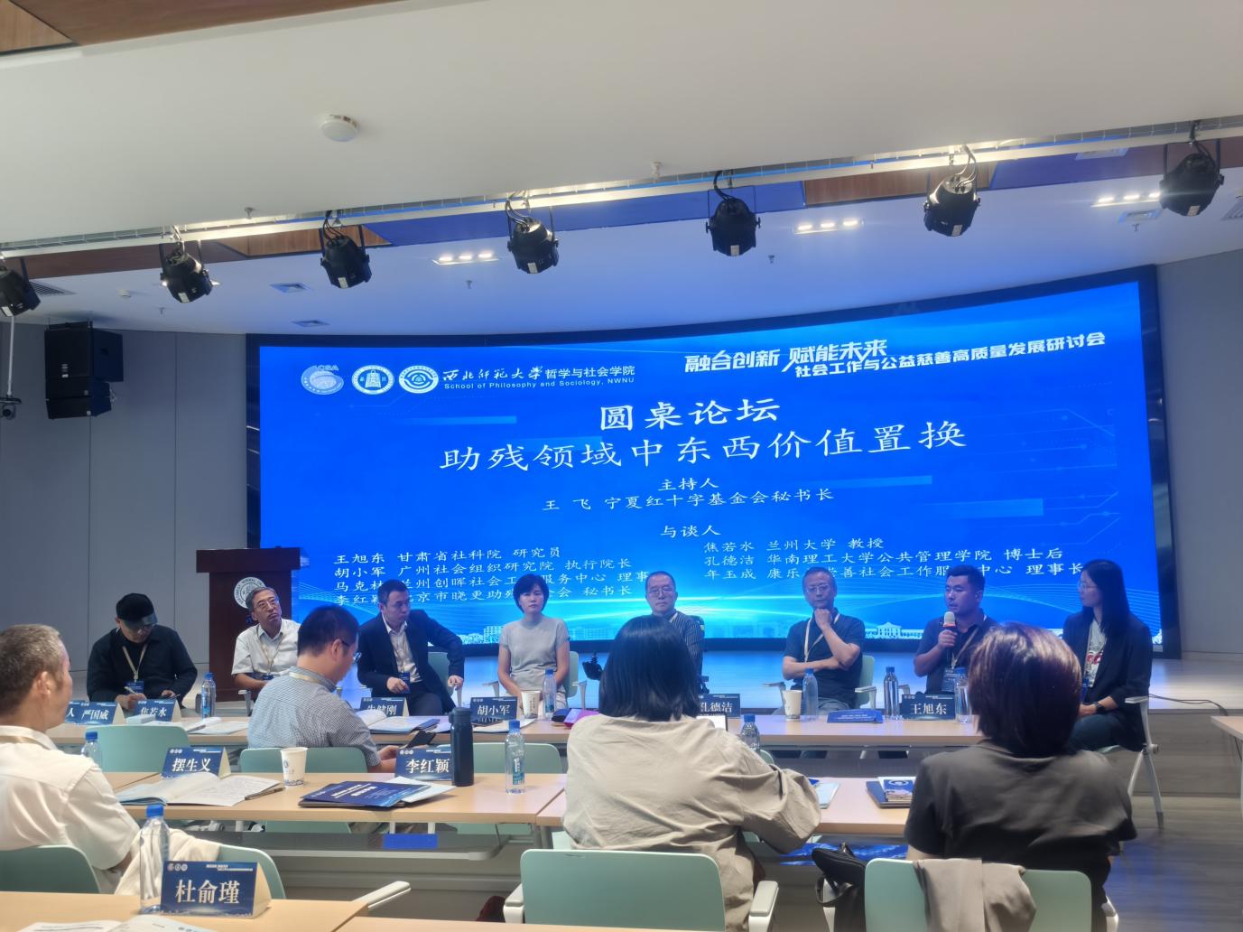 会议期间,还举办了“丝路慈善圆桌对话:助残领域中东西价值置换”,甘肃省社科院研究员王旭东、兰州大学焦若水教授、广州社会组织研究院执行院长胡小军、华南理工大学公共管理鲸鱼直播 博士后孔德洁、兰州创晖社会工作服务中心理事长马克林、康乐县崇善社会工作服务中心理事长年玉成、北京市晓更助残基金会秘书长李红颖等10余人参与座谈,共同围绕助残领域中东西价值置换展开交流与讨论。稍后,甘肃兴邦社会工作服务中心理事长摆生义进行论坛观察发言。
