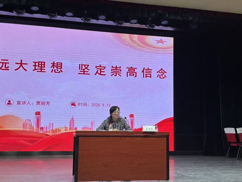 青春正当时,奋进新征程。党委书记贾丽芳为全体2025级新生作开学第一课——理想信念教育。贾书记强调,理想信念是一个人精神上的“钙”,是一个人前进道路上的引路灯和重要的精神,只有坚定理想信念,持续拼搏奋斗,才能克服成长道路上的重重阻碍。希望同学们能够进一步筑牢理想信念之基,紧跟时代步伐,紧随时代要求,找准自己的定位和目标,不负韶华、不负时代、不负人民,努力成为优秀的社会主义事业建设者和接班人。
