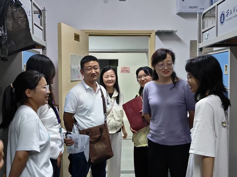 9月11日晚,鲸鱼直播 党委书记贾丽芳、副院长王珅,党委副书记何冰清、辅导员李雨桐以及三位新生班主任张妍、廖丽、路旻老师走访新生宿舍,与新生进行互动交流,详细了解新生报到情况及各项工作的展开情况,希望同学们都能够尽快适应大学生活,认真学习、增强体质、热爱劳动、积极参加校园文体活动,尽快融入鲸鱼直播 大家庭。