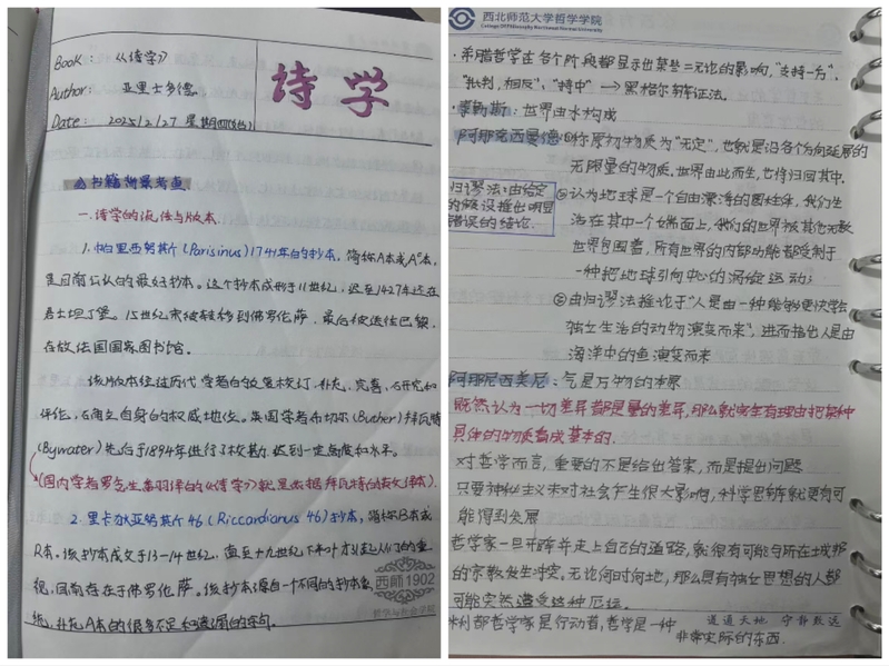 参赛笔记各具特色:或字迹工整、图文并茂,以思维导图梳理脉络;或批注精到、感悟深刻,融合文本理解与个人思考;更有作品将书中智慧与时代议题相连,展现宽广视野与独到见解。这些笔记既是阅读的收获,更是哲社学子勤于思考、乐于探索的生动体现。