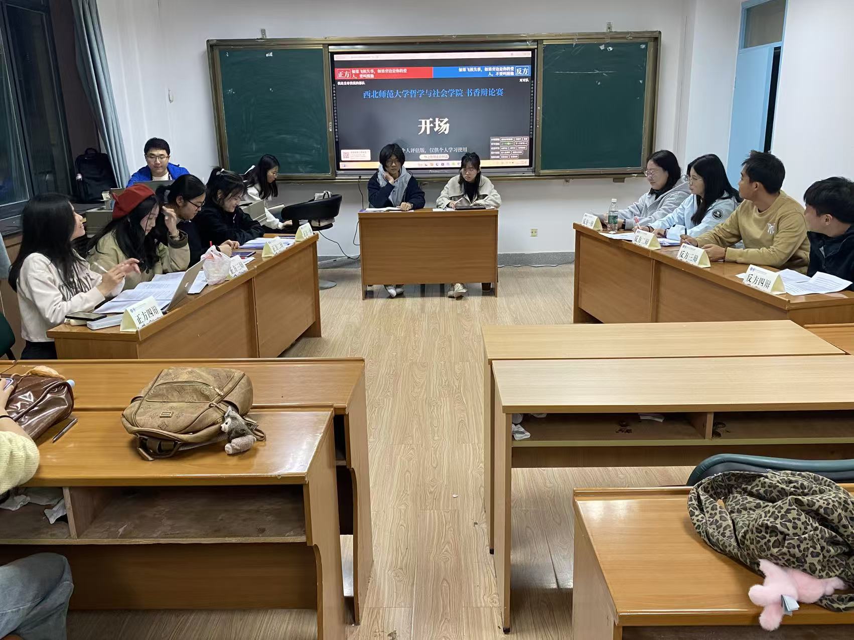 辩论会自启动以来,受到全院学生广泛关注,八支队伍报名参赛。10月30日晚,初赛在教学楼501、503、416教室及四楼报告厅同步举行。辩题设计贴近生活又富于哲思,如“朋友食用‘黄磊做的豆角’是否应告知”“飞机失事时是否应唤醒身旁的爱人”等,引发同学们积极思考与讨论,现场气氛活跃。