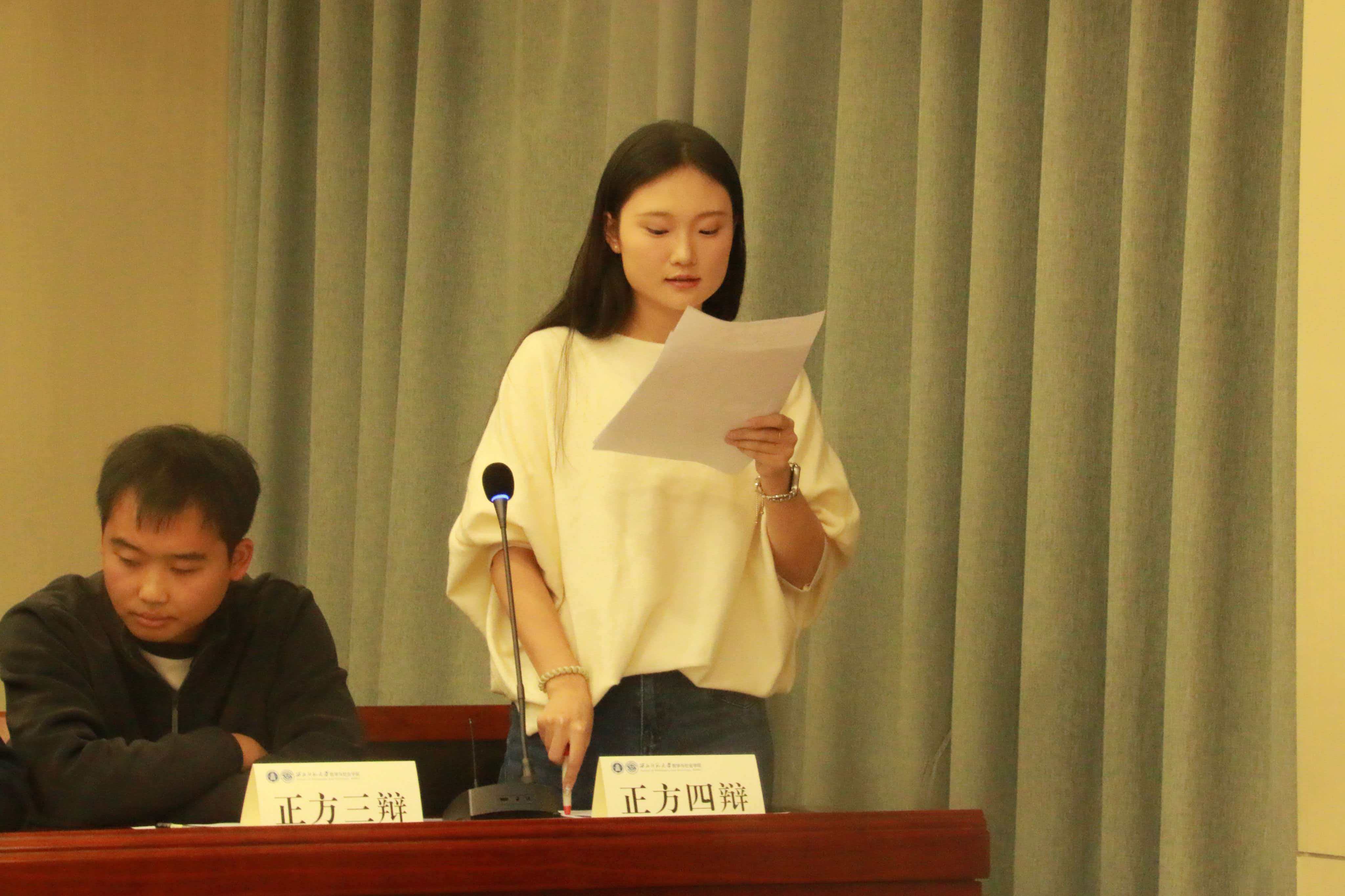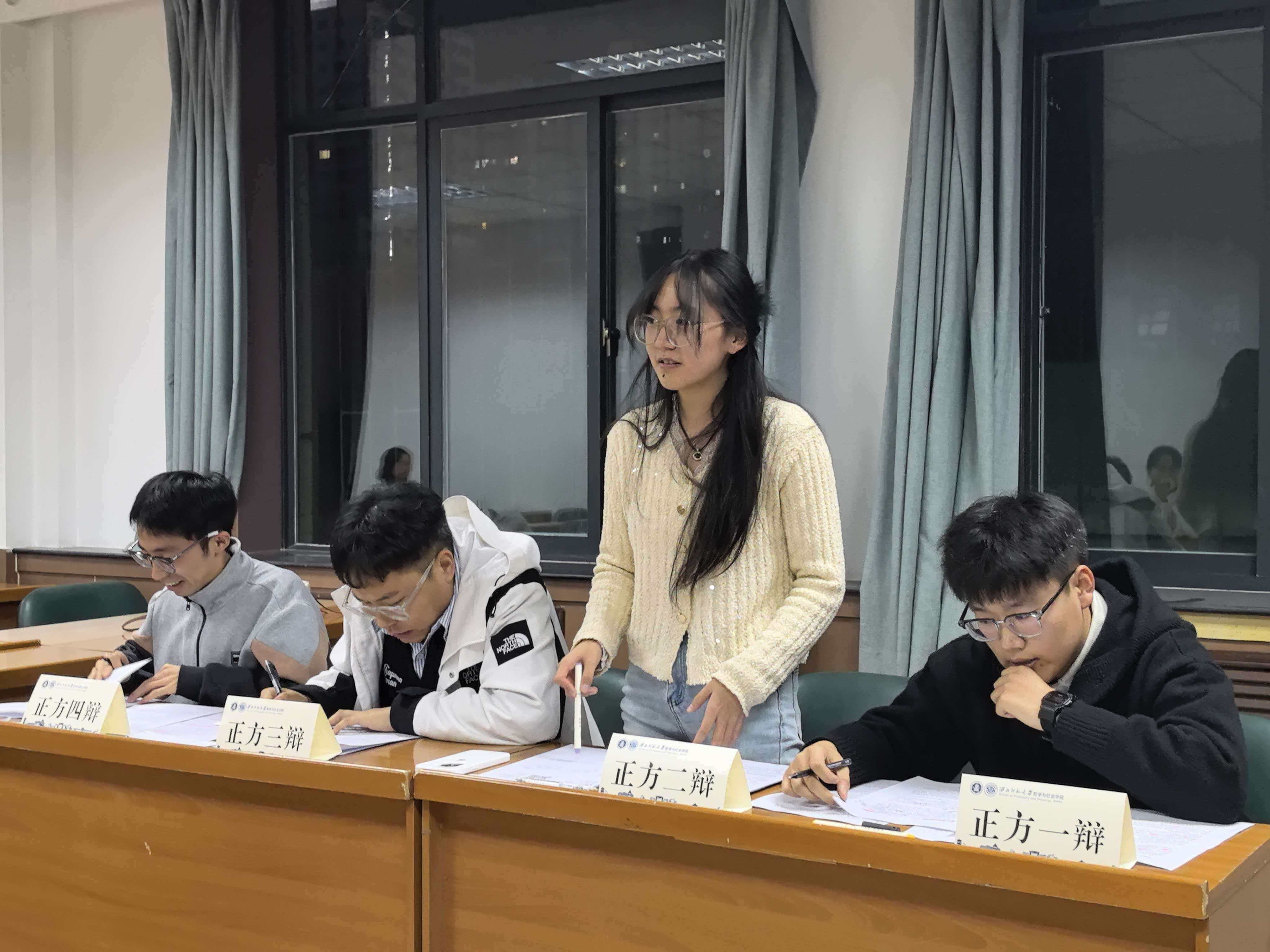 经过初赛选拔,四支队伍晋级半决赛。11月2日晚,半决赛围绕“短暂的解离是麻木逃避还是无声抗争”“‘幸福者退让原则’是善的智慧还是对恶的纵容”等更具深度的议题展开。辩手们旁征博引,言辞精辟,展现出良好的思辨素养。最终,“对对队”与“夺冠队”晋级决赛,“你说的不队”与“就是讨个学分有啥不队”进入季军争夺。
